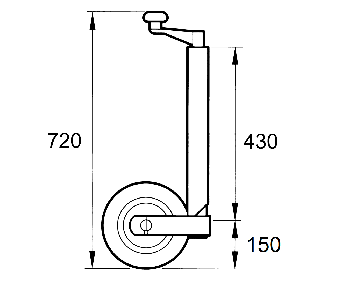 NAVOJNA PODPORNA NOGA S KOLESOM ZA AVTOPRIKOLICE 250mm 400kg